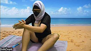 Hijab muslim babe risks public beach fuck with stranger's cock!