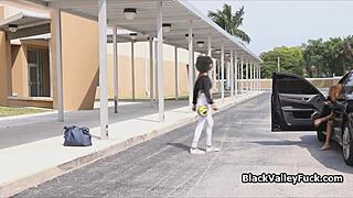 Devious Ebony Teen 18+ Shares Thick White Cock in Raw Action