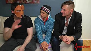 oh man busty blonde teen bound for rough anal domination in threesome ride!