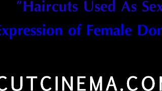 femdom haircut domination with bound spanking in cinema fetish scene