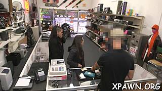 Nasty amateur darling screwed hard in shop by rough cock