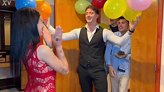 argentina's birthday bash explodes with gangbang dp and creamy milk guzzling!