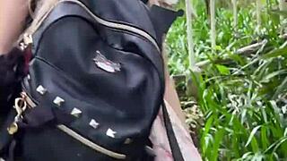 asian exhibitionist squirts solo on mountain flashing pussy