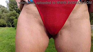 skinny milf gets piss on face in garden slow motion