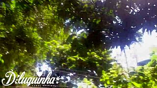 lesbian couple outdoors ravaged by homeless man's rough fucking