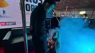 a fuckable blonde performs foot job handsome hunk cumshot