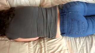 Big Ass Mature Beauty Masturbates in Jeans and Takes Cumshot on Tits