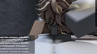 Cute shemale femboy begs for more during intense roblox fucking session