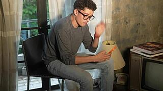 Hey, why not watch me masturbate on the couch with my glasses on?