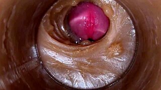 closeup precum fills shaved pussy in 4k vagina cam