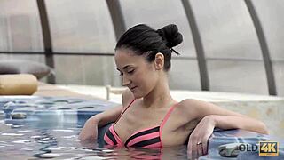 old man and young 18+ girl intimate in jacuzzi