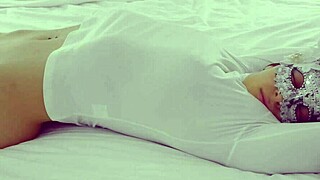 Hey young guy, wanna sneak fuck this sexy cleaning lady on the bed?
