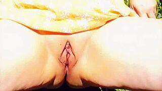 Exquisite sex kitten gets her spread twat full of warm piss and ejaculates