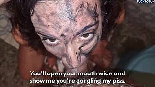 human toilet slut, gulp down piss while deepthroating in total humiliation?