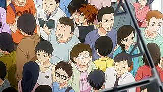 traveling on a train with a busty brunette from anime