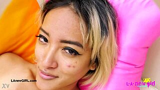 gorgeous asian model strips to show her petite horny body