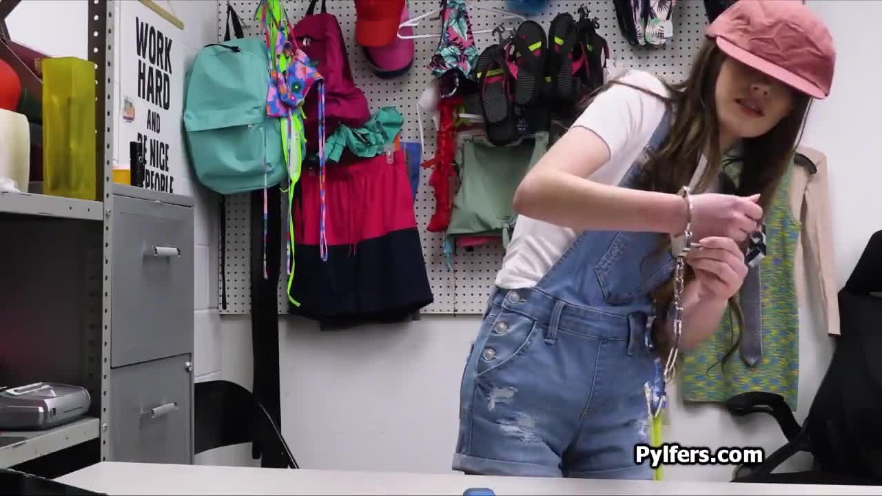 Handcuffed brunette teen spies on office dicking with hidden cam 😏